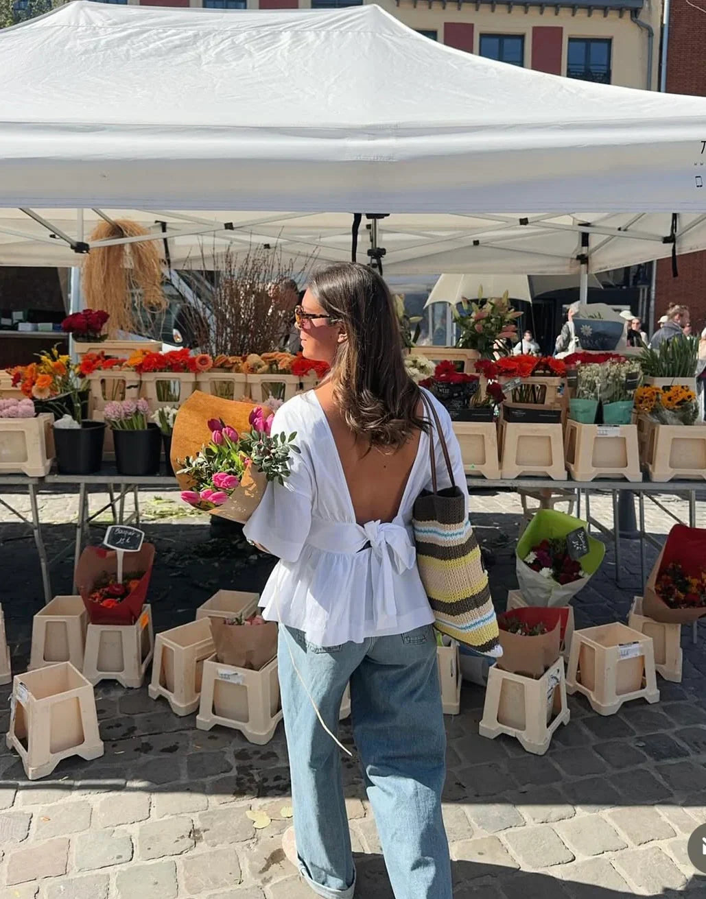 De Colette Blouse is een echte blikvanger: speels, vrouwelijk en perfect voor dagen waarop je iets bijzonders wilt dragen. De diepe open rug, elegante striksluiting en luchtige pasvorm maken deze limited edition blouse onweerstaanbaar. Ideaal voor een zomerse city stroll, een etentje op het terras of een dag vol zelfliefde.